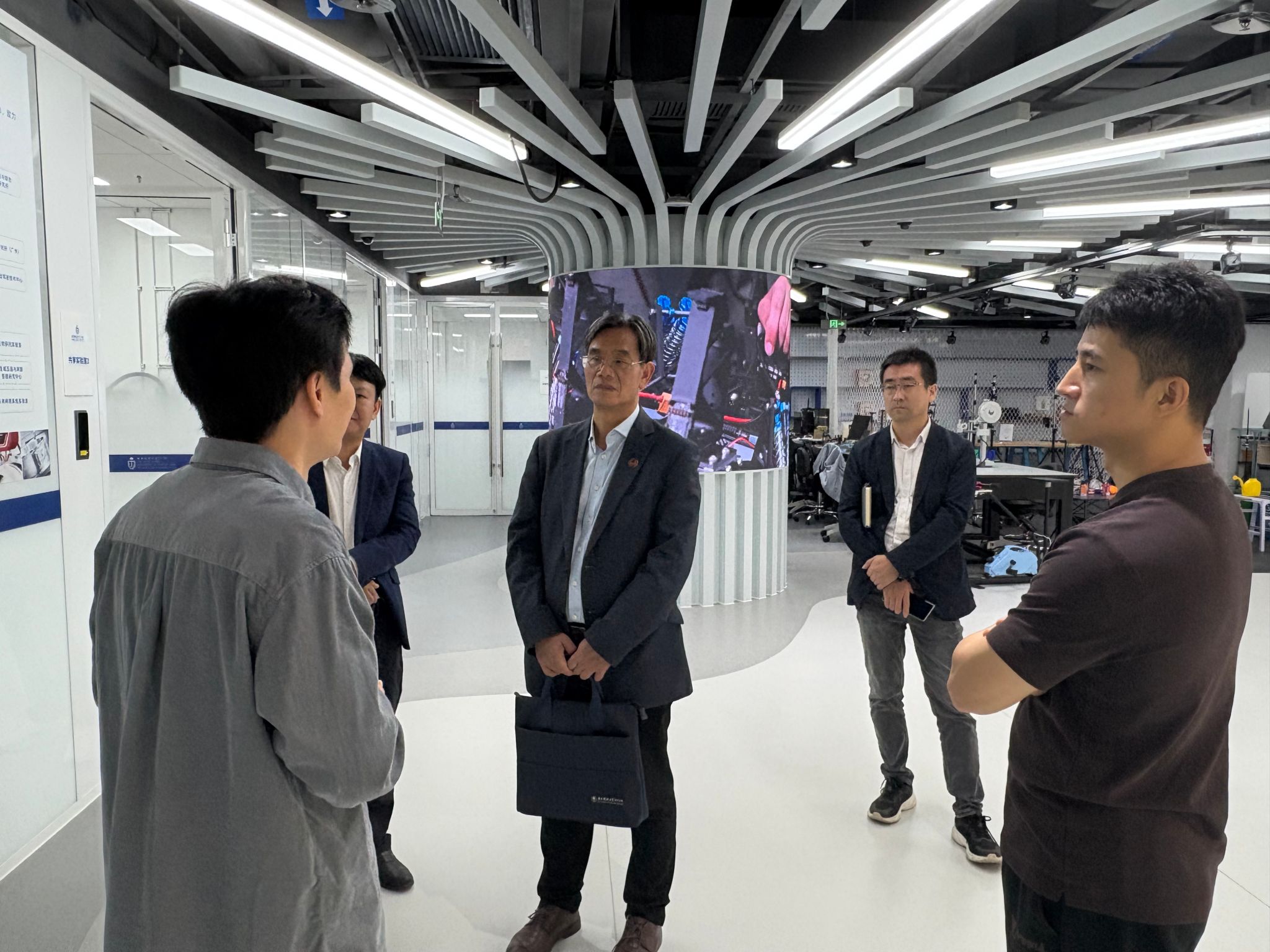 在香港科技大学(广州)相关人员的陪同下,调研团队依次参观了访客资讯中心、Highbay 嗨呗天地、精密测量与电气电子工坊 、未来技术实验室、红鸟学创空间大教室、图书馆、3D打印木工坊等多个特色场馆与设施。这些场所充分展现了港科大(广州)在跨学科平台搭建、创新实践教学、科研设备共享以及支持学生自主创意实现方面的先进理念与雄厚实力。从鼓励协作的开放空间“嗨呗天地”,到装备先进、鼓励动手实践的各类工坊与实验室,再到支持跨学科学习的红鸟学创空间,均展现出该校以“以学生为中心、以创新为驱动”的育人生态。